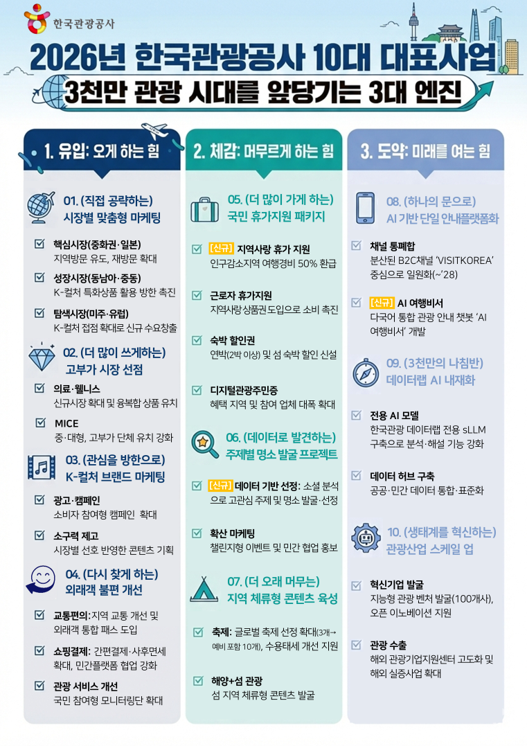 - 2026년 관광이 대한민국의 성장 동력이 되는, 10대 대표사업 발표 -